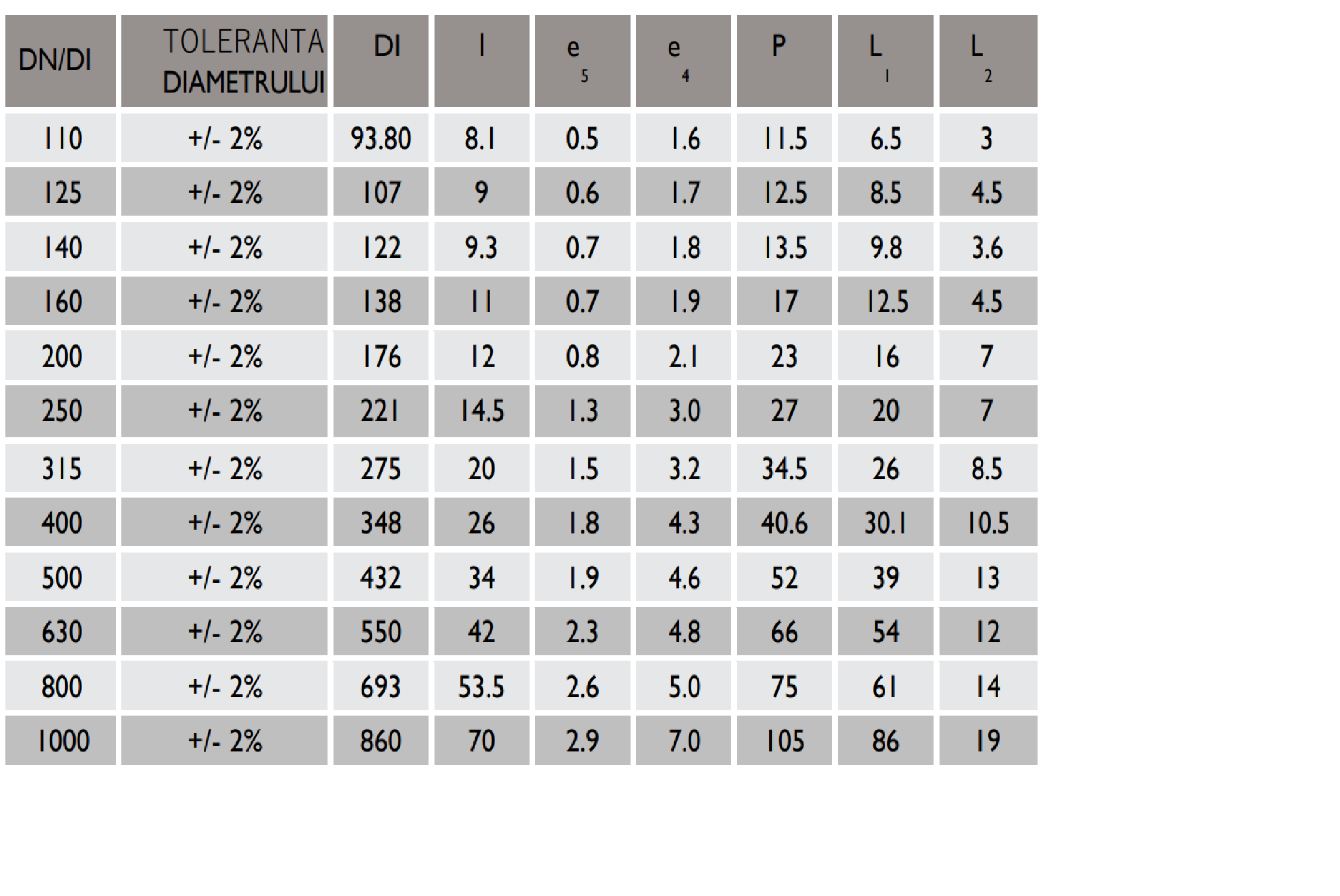 - DE: diametrul exterior standardizat conform standardului EN 13476-3